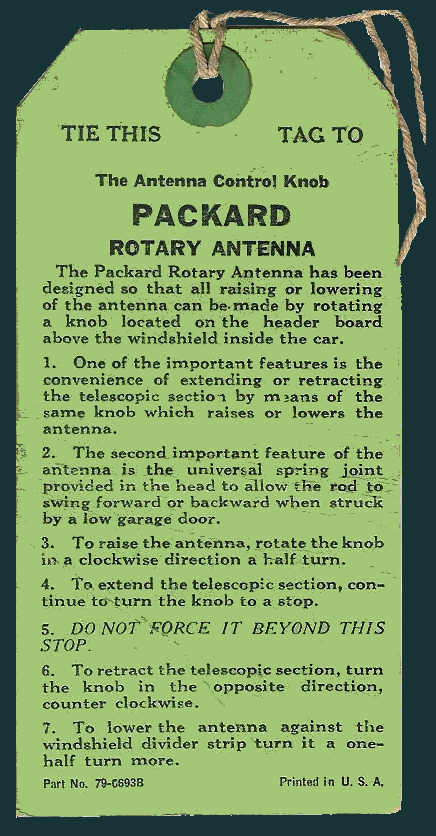 Originaldokumentation der Packard Motor Car Corporation, ergänzt um die Abbildung einer Philco-Antenne