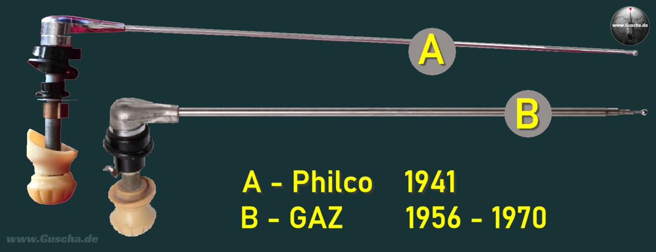 Zwei Versionen der ZIS-Dachantenne im direkten Vergleich mit dem Philco-Design.